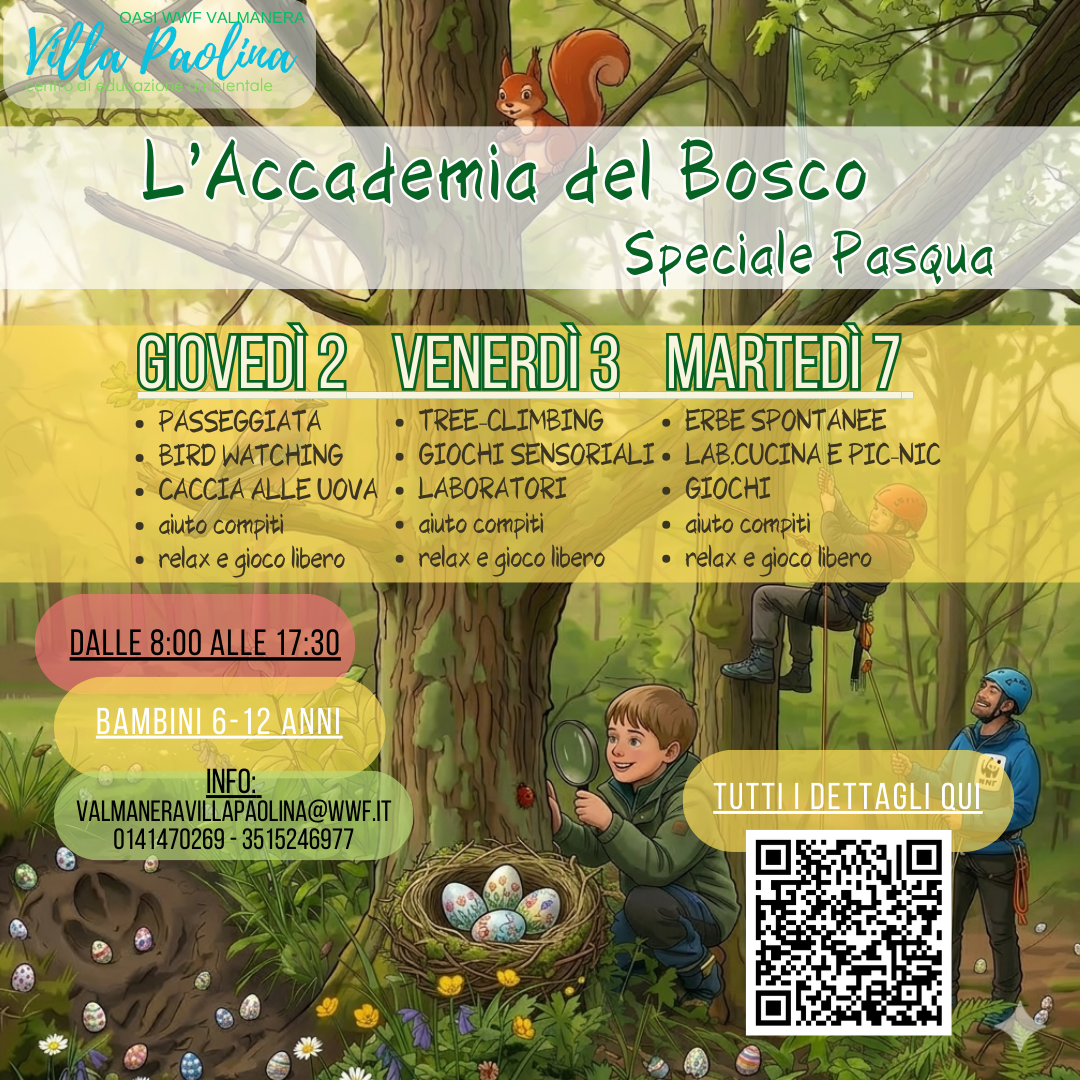 🐣 Pasqua in arrivo? La natura chiama all’Oasi WWF Valmanera! 🌿 Siete pronti a far vivere ai vostri bambini un’esperienza indimenticabile tra alberi, scoperte e divertimento? Nasce l’Accademia del Bosco con uno Speciale Pasqua tutto da vivere a Villa Paolina! 🌳✨ Tre giornate dedicate all’esplorazione, al gioco e alla socialità, immerse nel verde dell’Oasi. Ecco […]