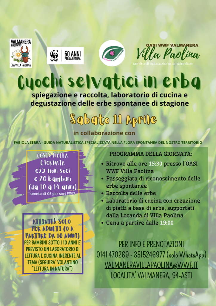 Iscrizioni entro giovedí 9/4 contattando valmaneravillapaolina@wwf – 0141470269 e 3515246977 (solo Whatsapp)