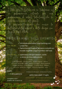 Forest bathing, percorso sensoriale, performance musicali live, letture, danza e buon cibo.